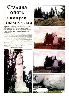 Газета «Красноярский рабочий» с чувством глубокого удовлетворения сообщила 15 сентября 2006 года, что «Сталина опять скинули с пьедестала. В поселке Курейка Туруханского района снесён памятник Иосифу Сталину».