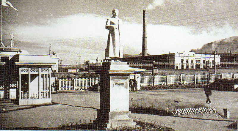 Читая газету «Заполярный вестник» за 8 июня 2001 г., мы натолкнулись на статью Аллы Макаровой под названием «Случается, что и памятник сносят», где речь шла об утраченном памятнике. Возле заголовка виден и он сам. Но здания железнодорожного вокзала не видно. На фотографии запечатлен забор, ровное поле (напоминает футбольное), а позади трубы и, судя по всему, завод. Как впоследствии выяснилось, это фото памятника Сталину на стадионе, возле которого расположен механический завод (на этом месте сейчас стоит цех металлоконструкций механического завода). В ней автор ссылается на письмо Д.И. Корчмакова, работника проектной конторы, занимавшегося непосредственно интересующим нас памятником. В фонде письменных документов музея мы и нашли это письмо, адресованное Л.Н. Потаповой, секретарю норильского отделения ВООПИиК. Она пыталась создать путеводитель по памятникам и памятным местам Норильска. Итак, с чего же все начиналось?