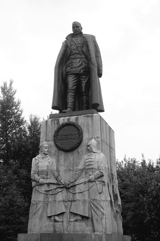 НА СНИМКЕ: На постаменте памятника Александру Колчаку в Иркутске изображены белогвардеец и красноармеец, скрестившие винтовки. Адмирал как бы над их схваткой, хотя вряд ли кто сомневается, что он - один из самых активных участников кровопролитной Гражданской войны.