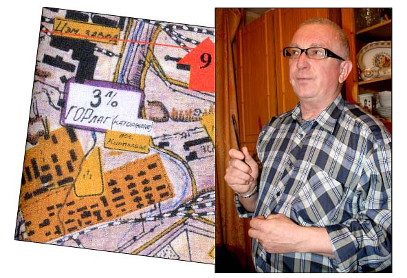 Потом я попал в городской архив к Ирине Перфильевой. Она обрадовалась мне и моей идее. В то время у меня как раз был отпуск, и я практически весь его провёл в архиве, ходил туда как на работу. Так на моей самодельной карте стали появляться конкретные объекты. Постепенно разбираясь в схемах и воспоминаниях заключённых, я стал находить в них ошибки, расхождения. Поэтому всю информацию я перепроверял, на слово никому не верил — только на первой стадии сбора информации. На каждый объект, на каждый барак, нанесённый на мою схему, я находил подлинный документ, подтверждающий его местонахождение, фотографировал его. (Дома у Вячеслава Васильевича лежат целые стопки копий архивных документов — Авт.)