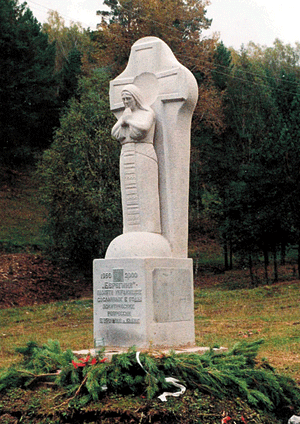 Благодаря помощи Саянского алюминиевого завода, комбината “Саянмрамор”, предпринимателя Николая Троско, бригады строителей бывших воинов-“афганцев” и при поддержке администрации города появился памятник “Берегиня”. Его изготовил скульптор, бывший строитель Саяно-Шушенской ГЭС Андрей Секунда. Он, не считаясь ни со временем, ни с расстоянием, часто приезжал в Майну, Саяногорск, на Бабик. Встречался с бывшими переселенцами, расспрашивал их — словом, вживался в тему. Скульптора особенно заинтересовала Анна Кравчук, чей домик еще долго одиноко стоял в тайге на месте прежнего поселения. В молодости Анна Макаровна была красавицей, и даже спустя годы, несмотря на тяжелый, изнуряющий труд, ее лицо излучало доброту и благородство. Образ Анны Макаровны в молодости и запечатлен в гранитной скульптуре “Берегиня”. 28 августа 2000 года в торжественной обстановке памятник “Берегиня” был открыт. В мероприятии приняли участие представители администрации города. Галина Салата, являвшаяся тогда председателем профсоюза работников образования и науки республики, зачитала приветствие ветеранам от правительства Хакасии. Памятник посвящен всем репрессированным, но установлен в связи с датой, скорбной для украинцев. На Бабике тогда проживали одни украинцы, за исключением четырех прибалтийских семей, поселившихся позже. Так что расценивать варварство, учиненное на Бабике в декабре 2009 года, как недружественный акт по отношению к украинцам, и безнравственно, и бездоказательно. Не таков русский народ. Это не Прибалтика, не Грузия и даже не сама Украина. Украинцы, проживающие в России, как кощунство восприняли то, что во время правления Ющенко Бандере присвоили звание Героя Украины и установили памятники, что из УПА “вылупились” борцы за свободную Украину, будто забыв, кто сжег белорусскую Хатынь, кто, прислуживая гитлеровцам, свершил множество других преступлений, в том числе против своего собственного народа.