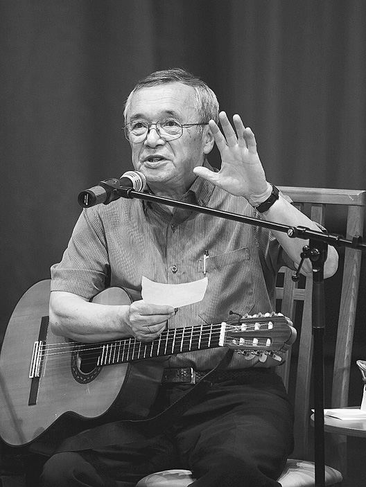 Его любят многие, даже те, кто не знает его имени, но напевает его песенки из фильмов и спектаклей. Юлий Черсанович Ким - один из самых ярких и оригинальных представителей бардовского движения, поэт и композитор, драматург, сценарист, либреттист. Лауреат премии "Золотой Остап" и государственной премии имени Булата Окуджавы. Напомню лишь некоторые из его популярных песен: стилизованные под фольклор "Ходят кони над рекою" и "Журавль по небу летит" из фильма "Бумбараш", "Губы окаянные, думы потаённые" из "Пяти вечеров", романтически-иронические песни Остапа Бендера из "Двенадцати стульев", уморительный гимн пошлости "Бабочка крылышками бяк-бяк-бяк-бяк" из "Обыкновенного чуда". Эти и многие другие песни прозвучали в воскресный вечер.