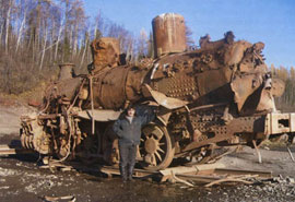 Тогда определенных мыслей, где именно будут стоят паровозы, у нас с Бардюковым не было. Просила Глава администрации Туруханского района С.Г.Юрченко, если вытащим, поставить один в Туруханске, но технически затащить 50-тонную махину в туруханскую гору от реки посчитали делом невозможным, да и, наивные, думали мы сначала починить паровозы. Не сами, конечно. Рассуждали так: раз раритет, отдадим РЖД оба паровоза, они с руками с ногами заберут, один они восстановят для себя, другой для Туруханского района. Но оказалось все намного прозаичней. Игарский музей вдруг вспомнил, что это вверенные музею уникальные образцы техники, которые неизвестные утащили на металлолом. Снарядили на вертолете целую экспедицию -все руководство г.Игарки, каких только силовых структур и ведомств не было, вплоть до рыбинспекции и санэпидемстанции, чтобы предотвратить вывоз паровозов. Откуда только у музейных работников такие деньги на полеты? Лучше помогли бы вытащить эти самые паровозы. Тем более секрета из нашей экспедиции никто не делал и идею эту неоднократно озвучивали, как лично я, так и Бардюков, будучи депутатом Туруханского районного совета- бывая в Туруханске и Игарке. А когда, благодаря музейщикам, уголовное дело по поводу хищения паровозов завели, а чиновники из РАО РЖД не проявили совершенно никакого интереса к паровозам, желание и вовсе отпало заниматься этим вопросом.