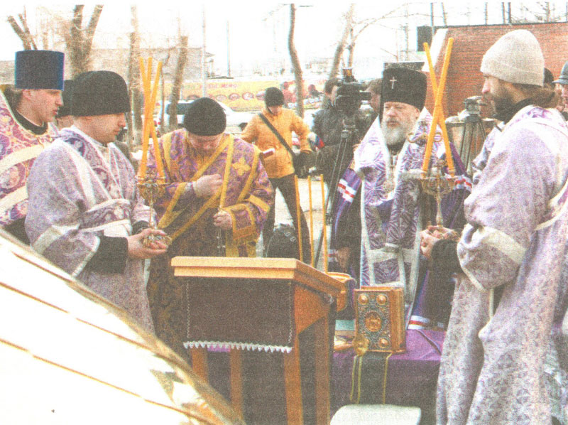 Его Высокопреосвященство пожелал строителям храма помощи Божией в их дальнейших трудах и поздравил присутствующих с наступающим праздником Благовещения Пресвятой Богородицы