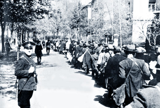 На снимке: Депортация немцев Поволжья в Сибирь. (От ред. сайта: судя по погонам, это более поздняя фотография)