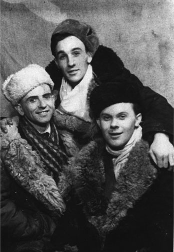 На снимке: Музыканты-заключённые оркестра при театре управления стройки N 503 в посёлке Ермаково: музыкант Иван Липко (в центре), аккордеонист Володя Остроухов (справа). Фото В. Руге, 1951 год.
