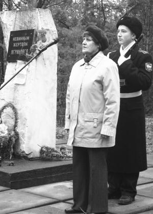 На снимках: На траурном митинге выступает Галина Шаверина;
