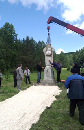 Три месяца назад к нам обратились члены общества «Мемориал». Они в августе 2000 года установили памятник на этом самом месте. За это время в Саяногорске скульптор Секунда изготовил новую фигуру «Берегини». Сейчас мы ее видим. И впредь не допустим такого варварства и произвола на своей территории» - заявил технический директор «Гладенькой» Андрей Волченко, принимавший непосредственное участие в установке скульптуры.
