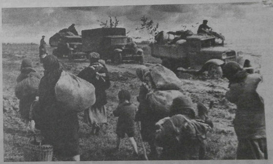 Вторая волна советских немцев, оказавшихся в нашем крае, были так называемые «украинские немцы». В годы Великой Отечественной войны они проживали на оккупированных территориях и имели статус фольксдойче (этнические немцы, проживающие в других странах и бывших гражданами этих же стран). После поражения германских войск и дальнейшем продвижении на Запад Красной Армии, с Украины германскими властями были эвакуированы советские немцы в Польшу и саму Германию. По принуждению им пришлось отступать вместе с немецкими войсками. Первые немцы – репатрианты – небольшими группами начали прибывать на территорию СССР с начала 1945 года. Все они стали спецпоселенцами и не имели право вернуться в свои дома, в которых проживали до войны. Несколько семей оказались в нашем посёлке и деревне Покровка. Привезли их на барже осенью, когда на Енисее уже шёл лёд, выгрузили на берег. Они сами должны были искать себе жильё, работу, пропитание. Как правило, семьи многодетные с малолетними детьми.