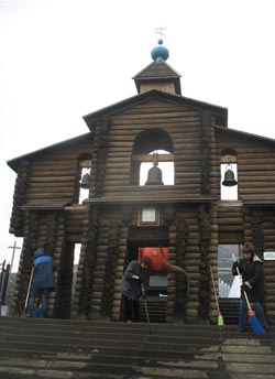 Покраской фасада часовни поручили заниматься Алесе Полухиной, которая четыре года трудится в управлении строительства ЗСК, сейчас она бригадир бурового участка. В ДМС «Лидер» девушка несколько лет, говорит, что любит подержать кисть в руках, ведь в свое время, окончив Норильский индустриальный, в поисках работы пришлось и помалярничать. Алеся, человек спортивный и семейный, всегда рада участвовать в полезных акциях. К ее сожалению, она пока мало что знает об истории места, на котором создали мемориал «Норильская Голгофа». Мы рассказали Алесе, что в 1990 году часовню, которую она с товарищами так старательно облагораживала, по собственному почину возвели энтузиасты из Молодежного центра «Практик». Его лидер Вадим Наговицын даже продал диковинный по тем временам видеомагнитофон, чтобы закончить строительство. Получается, норильская молодежь вместе с музейщиками в свое время начинала дело увековечивания памяти невинных жертв Норильлага. И сейчас здесь трудится, продолжая святые традиции первых волонтеров.