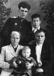 И уже потом от бабы Раи, красивой седой женщины (низкий поклон ей и всей её семье!), мать перевезла меня в Калач. Вот фотографии "Папе от Вовы, июль 1952 года" с бабушкой Настасьей, тётей Таней, дядей Лёшей и истощённой худой мамой, одни глаза горят...