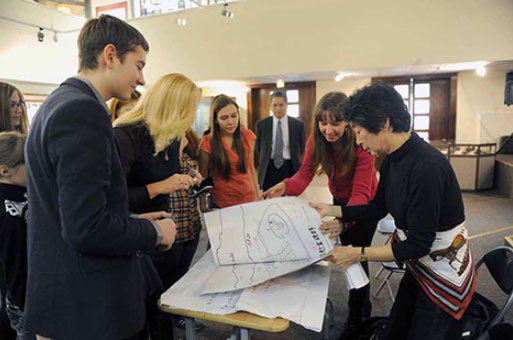 Несколько лет назад Сатико-сан начала изучать наш язык, даже научилась писать по-русски. Что и продемонстрировала на встрече с норильскими школьниками и студентами.