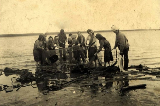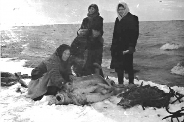 Здесь сгрузили около 500 человек и продовольствие: несколько мешков с крупой и мукой, которые тут же намокли - в тот день был прилив. Тёплых вещей ни у кого не было, готовить даже баланду было не на чем. Мужики бросились рыть землянки, лопата заходила только на полметра - оттаивали кострами.