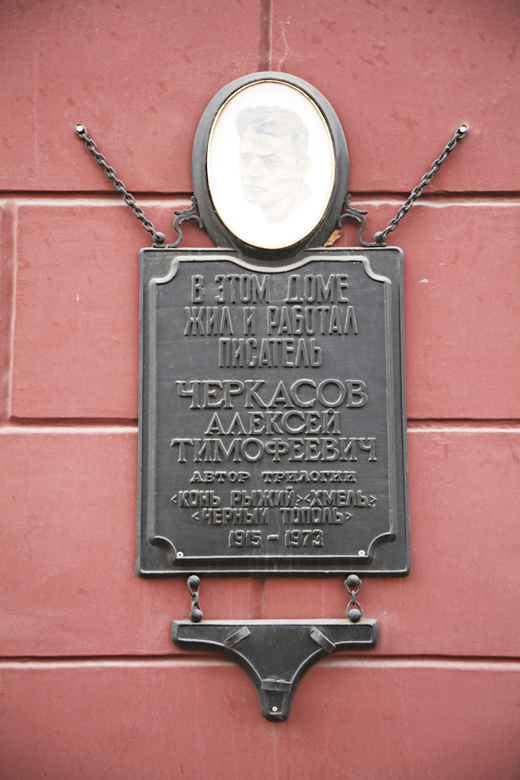 На фото: Писатель А. Т. Черкасов. Мемориальная доска на доме, где жил Алексей Черкасов.