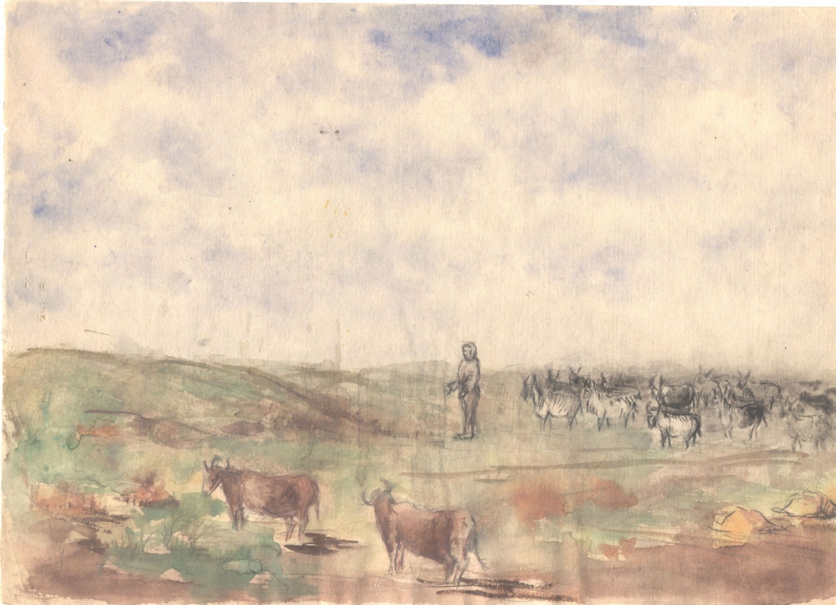 Левина-Розенгольц Е.П. Пастух и стадо.Караганда. Новый Майкудук. 1954-1955.