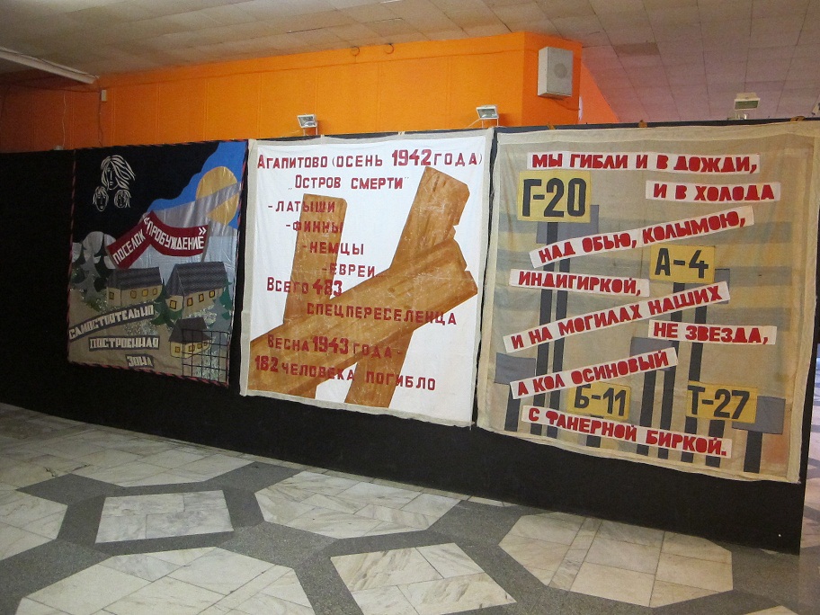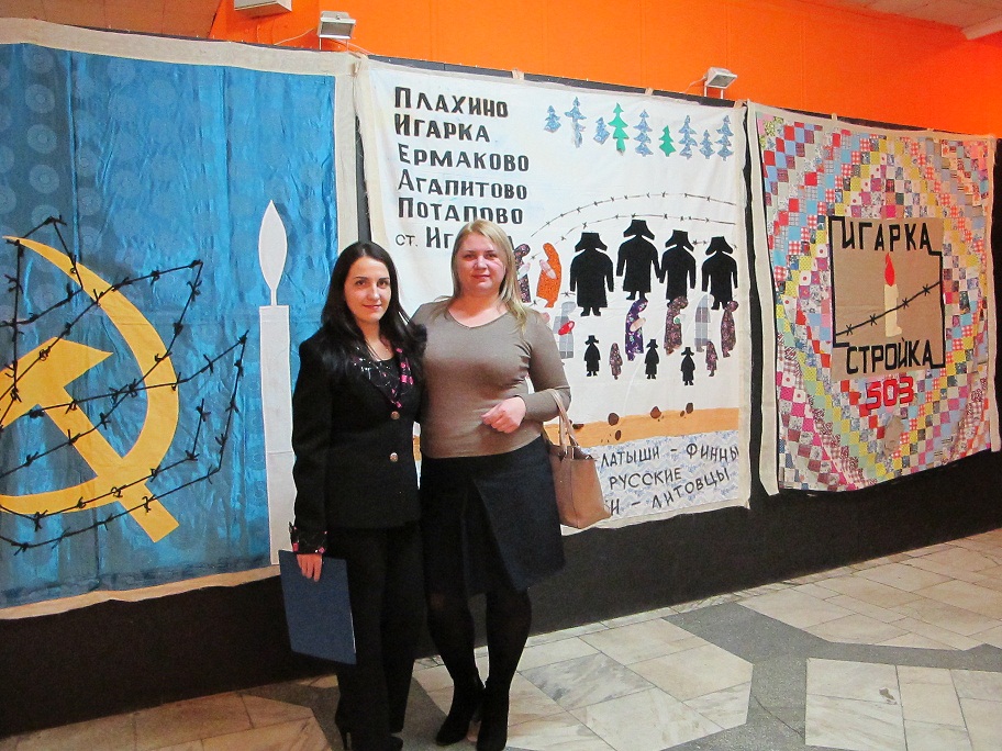 В Музейном центре Красноярска с 30 октября по 4 ноября проходила выставка «Лоскутки памяти в полотне истории», привезенная из Игарского краеведческого комплекса «Музей вечной мерзлоты». Для игарчан День памяти жертв политических репрессий – не разовая акция, каждый житель города понимает смысл слова «репрессированный». На выставке были представлены поминальные полотна, выполненные в лоскутной технике, состоящее из 10 фрагментов размером четыре квадратных метра каждое, которые были размещены в фойе культурно-исторического центра. Над созданием символических образов трудились коллективы образовательных учреждений (детских садов, школ, Центра детского творчества, детско-юношеского комплекса физической подготовки), учреждений культуры (музея вечной мерзлоты, городского дома культуры, детской школы искусств, городской библиотеки), учреждений социальной сферы (Центра социального обслуживания граждан и инвалидов, приюта для детей "Забота"), а также Совет ветеранов и неравнодушные горожане. Из отдельных составных частей, специально подобранных лоскутков ткани художник музея сложил в определенный рисунок цельное панно, которое впервые появилось на здании 23 дома 1 микрорайона нашего города в День памяти в 2005 году.