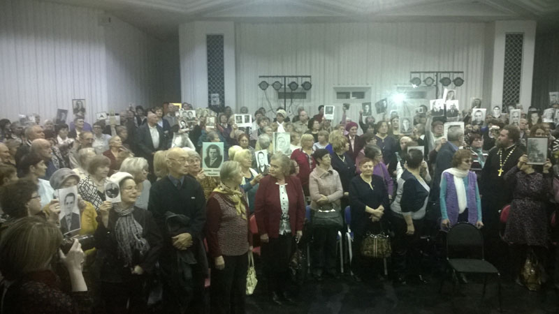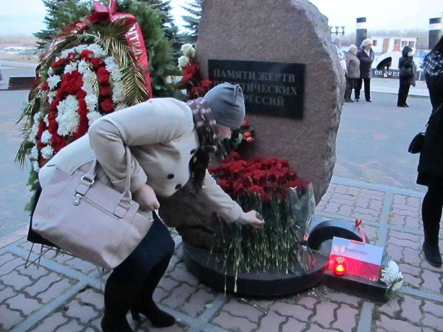 В этот день к митингующим был приглашен настоятель Свято–Никольского храма Иерей Петр Боев, он совершил молебен в память о жертвах политических репрессий и рассказал о том, как чтить память предков. Люди пришли на мероприятие с фотографиями своих погибших родителей. Собравшиеся почтили их память минутой молчания. На выставке были представлены книги из фонда Музея вечной мерзлоты: «Бутовский полигон» 1937-1938г., книга памяти жертв политических репрессий, Москва 1997 г., «История советских репрессий» том 1. Автор Ю. Стецовский, 1997 г. подарок Фонда А. Сахарова, «Имя им легион» автор А. Забелин, из-во Смоленского гуманитарного университета 1998 г. Пришедшие люди искали своих родственников в книгах памяти.