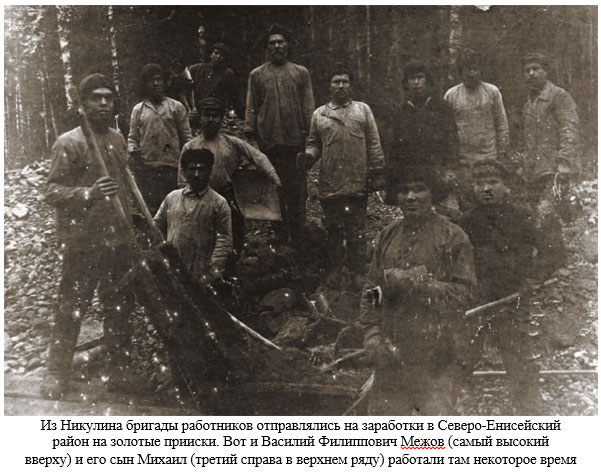 До тридцатых годов наша семья жила в деревне Межово Большемуртинского района. И фамилия наша – Межовы. Отец мой, Михаил Васильевич, был первым ребёнком в семье, за ним родились Мария и Филипп. Их отец, а мой дедушка, – Василий Филиппович Межов – был могучим мужчиной, молчаливым, глубоко верующим, много работающим, не пьющим и не курящим. А мать, моя бабушка – Аксинья Арсентьевна – была мягкой, доброй женщиной, хорошей хозяйкой.
