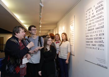 На выставке кроме роскошного видеоряда о герое, его окружении, времени и семье представлены плакаты с выдержками из статей мэтра. На билетах посетителей напечатано одно–два предложения — в продолжение той или иной выставочной цитаты: о Норильске, строителях Талнаха, людях, заводах, пароходах, чувствах — о чем только не писал норильский журналист!.. Соединить один текст с другим — значило найти ключ, сделать цитату полной, весомой, законченной.
