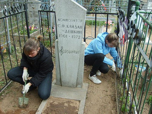 Кладбище в Великих Луках. Школьники ухаживают за могилой С.Ф.