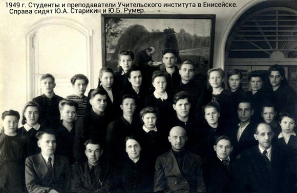 Какие ещё имена есть в проекте? В те времена по улицам Енисейска развозил воду профессор ЛГУ, историк и этнограф Сергей ДУБРОВСКИЙ. По ночам на судоверфи работал сторожем (а потом поднялся по карьерной лестнице — стал слесарем) человек, возглавлявший ранее военно-воздушную академию Жуковского Александр ТОДОРСКИЙ. Ученица ФАЛЬКА и МАЛЕВИЧА, Ева Павловна ЛЕВИНА-РОЗЕНГОЛЬЦ работала санитаркой, а создатель первых легковых автомобилей Константин ШАРАПОВ просто крутил баранку. А чего стоил Густав ШПЕТ, философ-полиглот? Местный гебист (сотрудник органов госбезопасности — прим. ред.) говорил: «Я могу открыть у себя филиал Академии наук». В те времена каждый девятый житель Енисейска был ссыльным. Например, в 1952 году в городе было 1010 ссыльных, из них 608 мужчин, 309 женщин и 93 ребёнка.