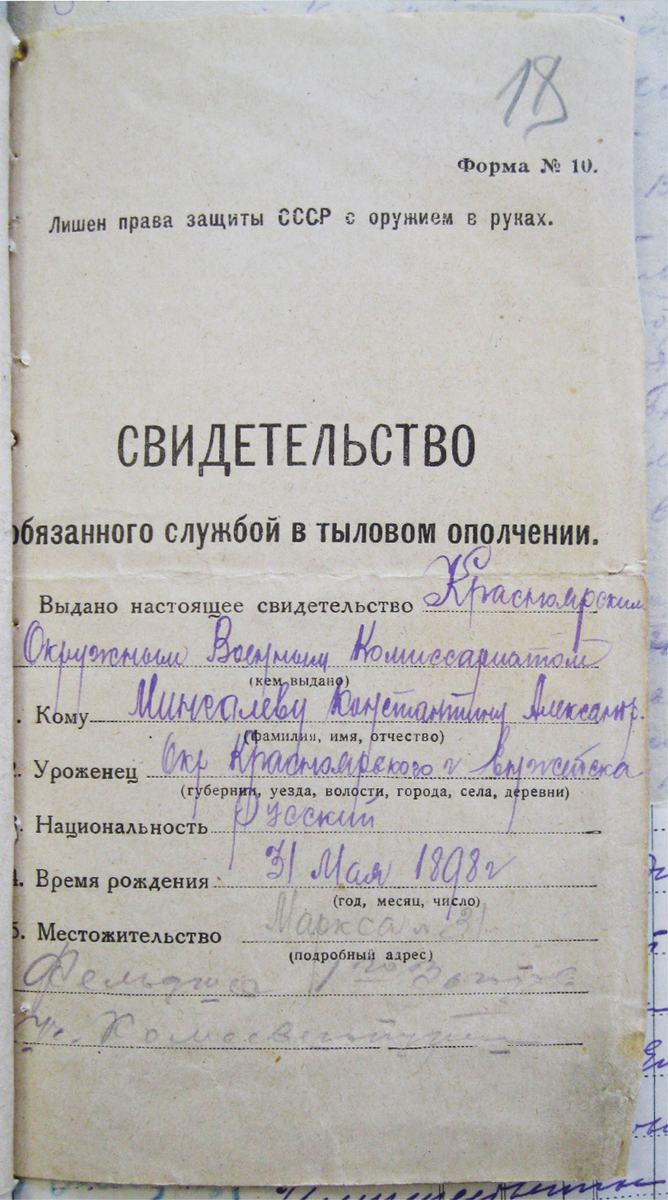 Сын лишенца, достигнув совершеннолетия, автоматически становился лишенцем и заносился в соответствующие списки. Но ведь он еще и достигал призывного возраста. Лишенцев призывали, но не в армию, а в тыловое ополчение, где они выполняли сугубо хозяйственные задачи. Оружие в руки им не давали, что было специально отображено в свидетельстве тылоополченца. Можно только представить, как обидно было получить такое свидетельство пареньку-призывнику, когда его друзья получали «нормальные» красноармейские книжки. А свидетельство тылоополченца было белого цвета, откуда и родилось понятие «белобилетник», которое к нашим дням приобрело совсем другой смысл. Так же, как и само тылоополчение, которое в 1937 году было преобразовано в строительные части РККА, иначе говоря — «стройбат».
