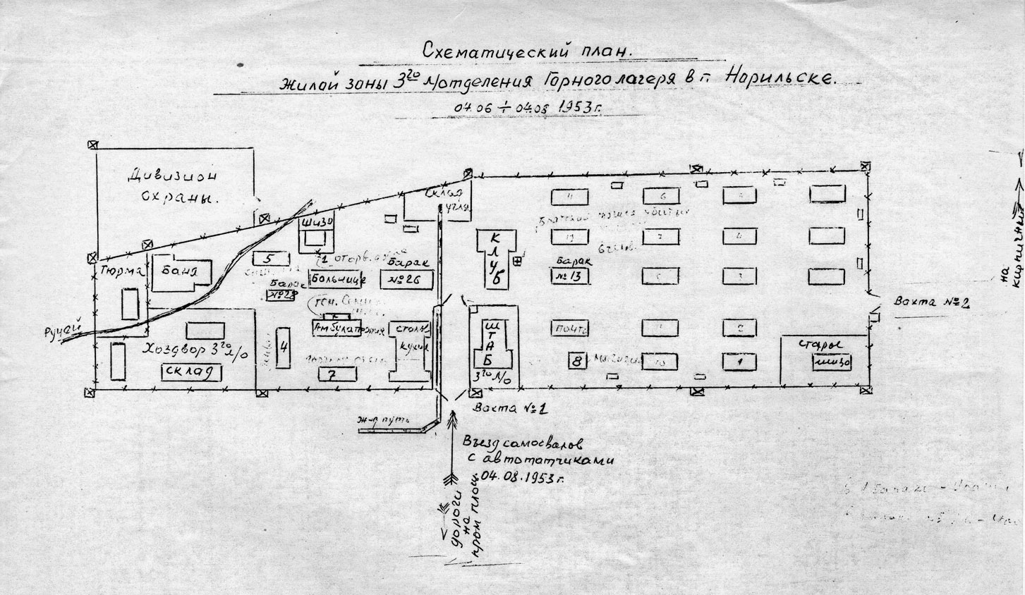 Нас информировали, что заключенные 4-го лаготделения готовят план разоружения нашего батальона. По ихнему плану намечалось: вечером в период, когда одна часть батальона находилась на службе, вторая — выйдет на смену первой, третья — будет конвоировать заключенных к месту работы и обратно, сделать «рывок» при выводе на работу вечерней смены и, ворвавшись в воинскую часть, завладеть оставшимся оружием и боеприпасами... развивать свои действия до захвата Норильска и Дудинки в свои руки, после чего связаться по радио с США... Нас беспрерывно предупреждали, что готовится к групповому побегу большая группа заключенных. Когда и где будет побег, сообщить нам не могли. Но информировали, что уже все готово к побегу и ждут только удобного момента. Удобнее момента, как 25 мая 1953 г., им и не нужно было, потому что у нас был банно-хозяйственный день и в подразделениях никого не было, все были в бане... Неужели я должен ждать, когда заключенные бросятся на конвой?