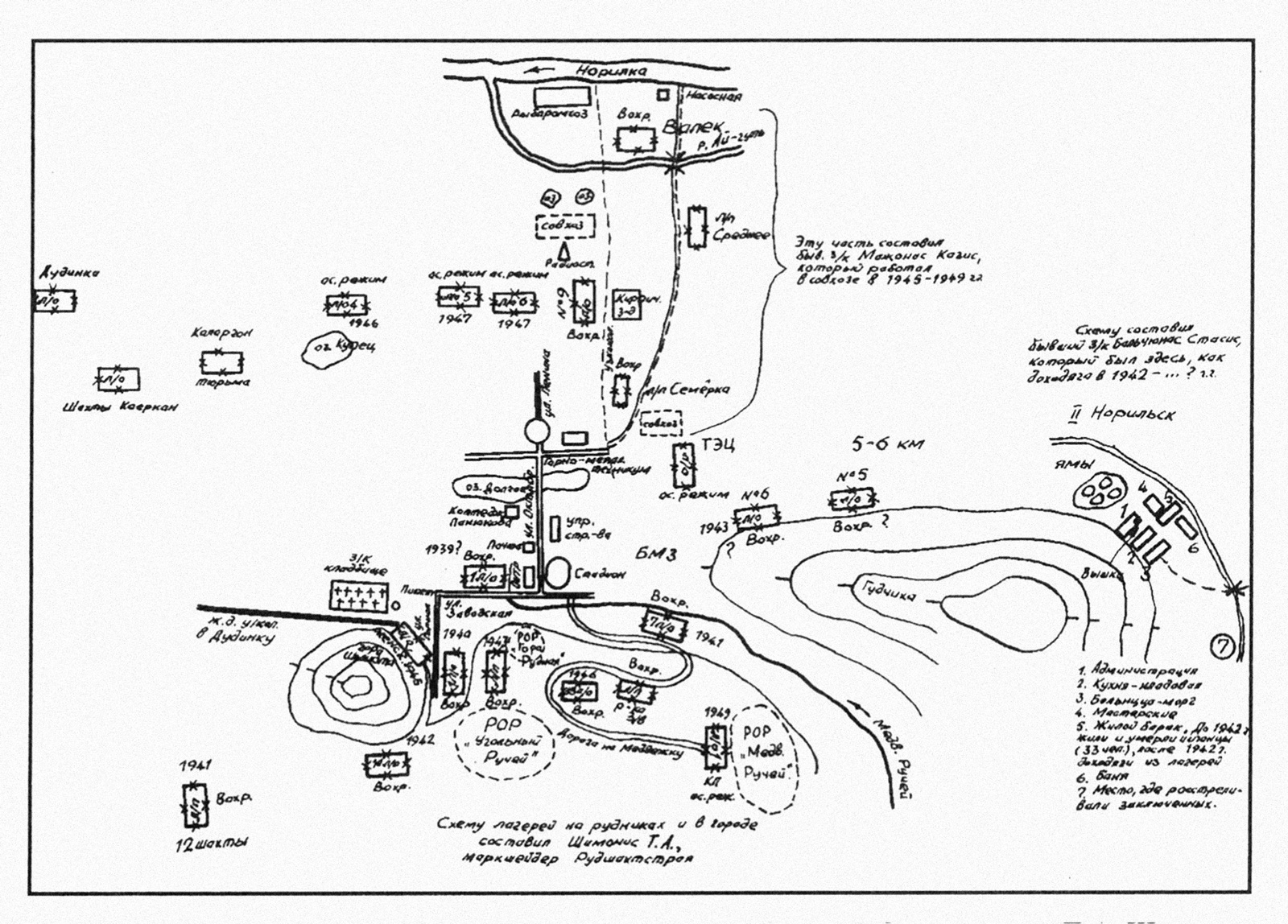 Схема Норильска и окрестностей, составленная заключенными разных лет