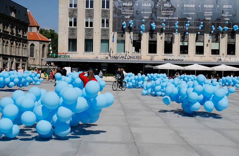 Таллинном (в центре Куно Рауде); голубые шары в День памяти символизируют слезы