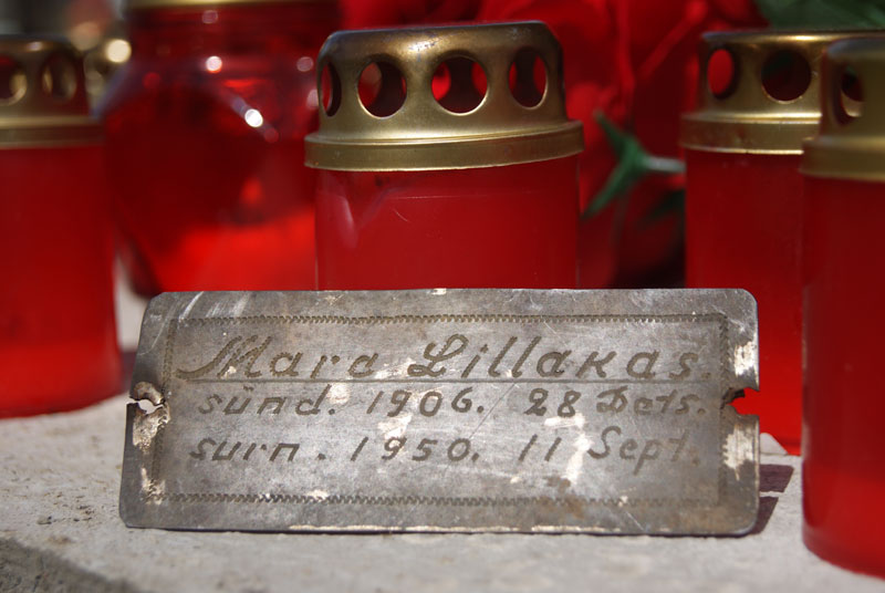 Металлическую табличку, которую вы видите на снимке, нашли в земле, когда готовили фундамент под памятник ссыльным эстонцам. На табличке указано имя – Маре Лиллакас, и годы жизни женщины: 28.12.1906 – 11.09.1950. Похоже, что давно сгнил тот крест, на котором находилась эта надпись, но сама находка говорила о том, что могила упомянутой эстонки была где-то неподалеку.