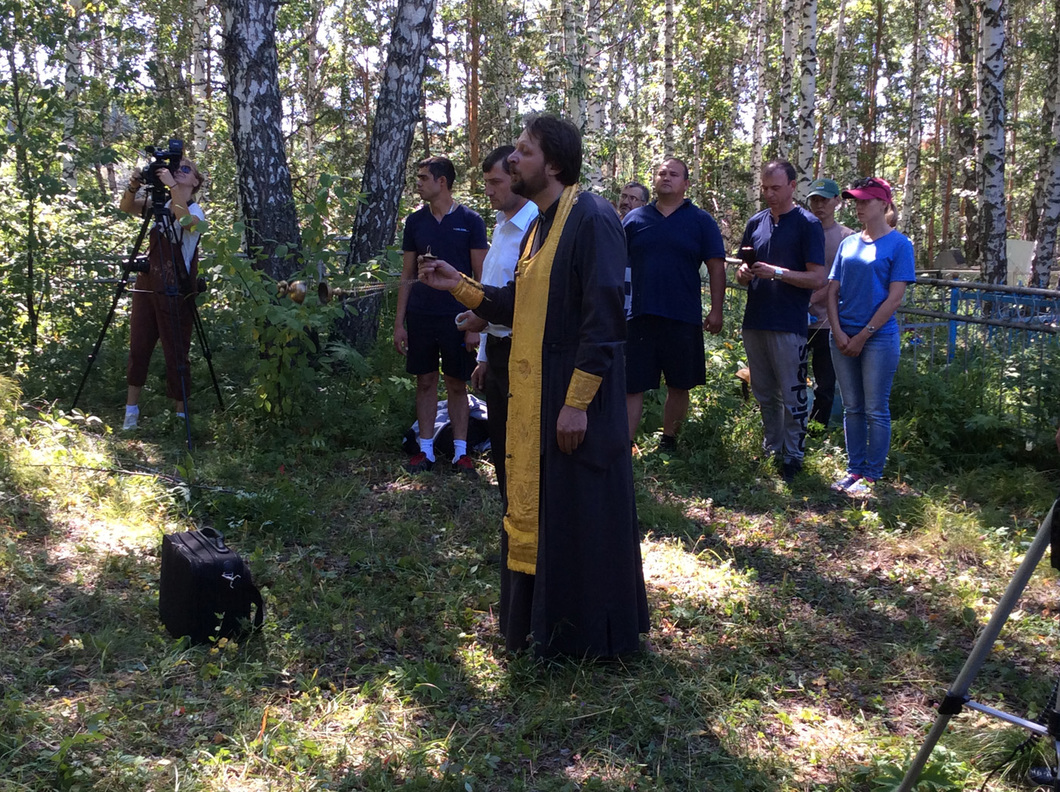 Случайно встреченный у кладбища настоятель храма Кирилла и Мефодия поселка Элита (ближнего к Минину) протоиерей Георгий Козгов легко соглашается пойти с нами и отслужить панихиду по безызвестным для всех нас отрокам и отроковицам.