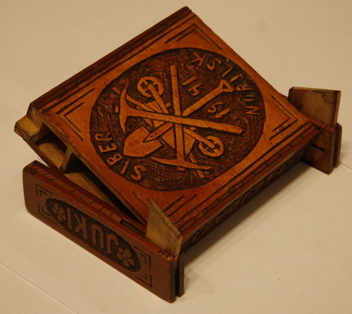 Эту шкатулку сделал заключенный в госпитале. Перед своей смертью он попросил вынести шкатулку из лагеря. Потом он умер.