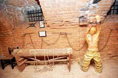 Барельефы, росписи стен, манекены, а также большинство экспонатов музея сделаны руками заключённых. Есть и подлинные раритеты: ручные и ножные кандалы, плети, другие орудия наказаний и пыток, одежда арестантов, аутентичные массивные двери и висячие замки к ним.