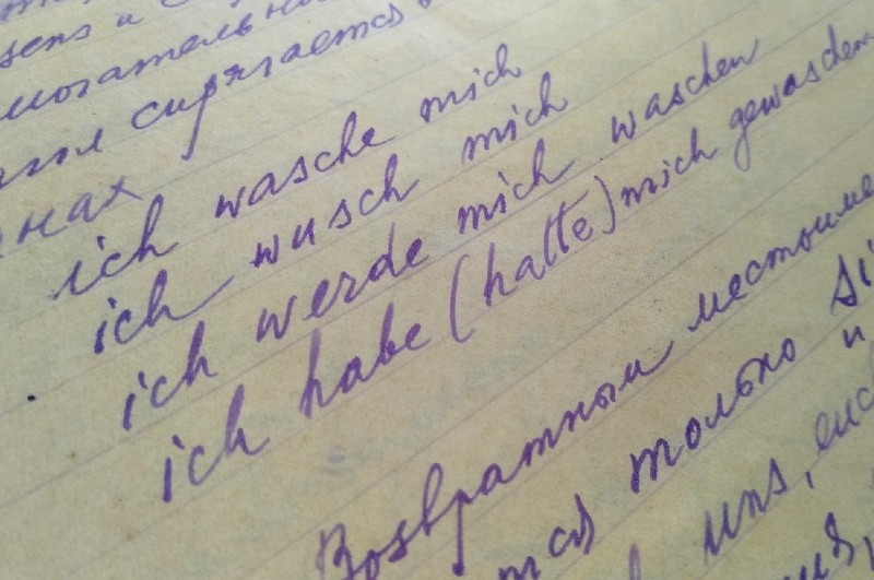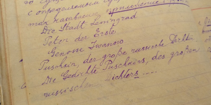 В 1941 году Н. К. Эрделя сослали в Ношино Абанского района, а по этой тетрадке изучали немецкий язык ношинские школьники.