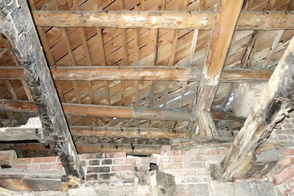 Здание постройки 1953 г. Явно ровесник посёлка. Из-за близости к ж/д предположил, что это нечто вроде станционной постройки.
