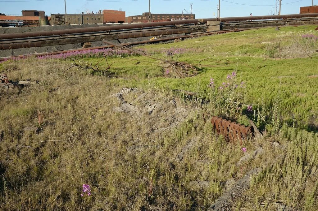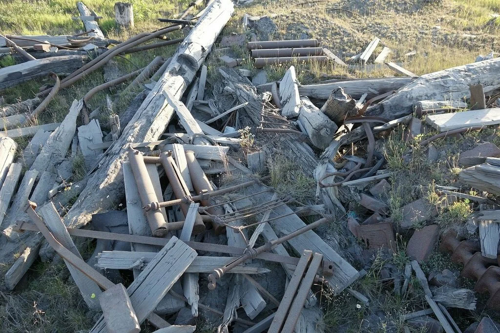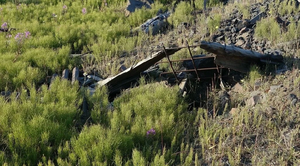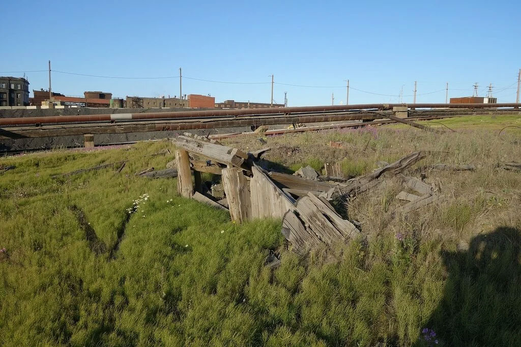Остатки жилого барака. Видны спинка металлической кровати и регистры парового отопления. Из воспоминаний жителя посёлка: "Всего в посёлке было 25 строений. Одно двухэтажное, деревянное на три подъезда. Кирпичными были две школы, магазин и, мне кажется баня полукаменная-полукирпичная. Улица была одна центральная и одна параллельная, на которой находился магазин. Почта была в здании столовой ,аптек, библиотек не было ,садик был в здании амбулатории, остановка была далеко на трассе. Отопление и водоснабжение было центральным. В нашем бараке мой отец с соседями сделали даже ванну и туалет. Жили мы напротив садика дом №25 кв 5. Электричество было стабильным, а вот печей не видал. Из домашнего хозяйства помню пару свинарников и сосед держал в подполе кур. Огородов не было, но редис выращивали на кусочках земли. Газа было очень много. С одной стороны никель, с другой - хлор. Выселять начали примерно с 66 ого . Были очень рады! Ж/д пути не проходили по посёлку. Возле клуба стоял ларёк, торговали молоком и пивом. Шлакоотвал находился рядом со школой. Когда сливали шлак - было очень красиво. Школа сгорела, когда в ней уже давно не учились. Школы были под номером 15. Ваш Е.П."