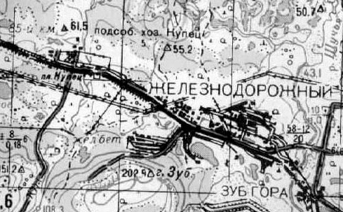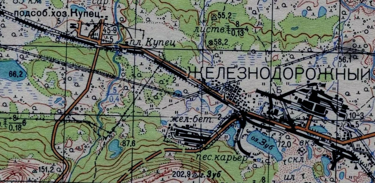 Фрагмент карты 1987. г. Название Железнодорожный присутствует, хотя для этих лет
