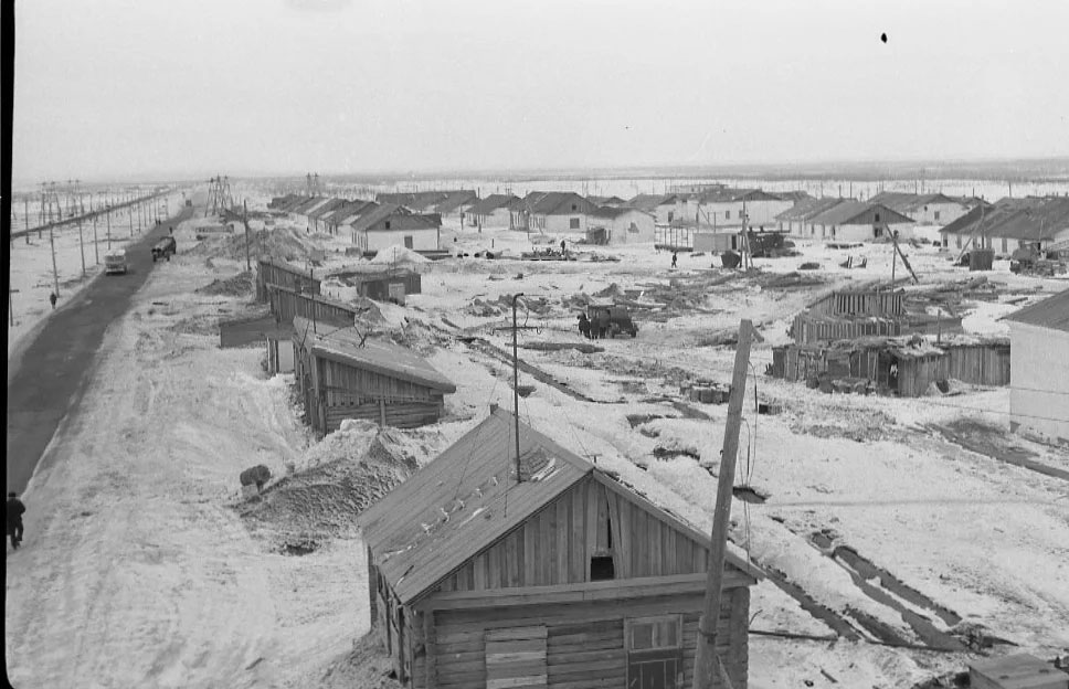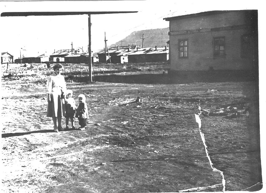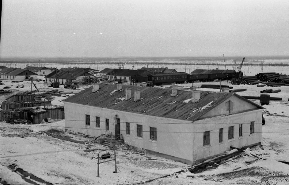 В самом поселке были одноэтажные бараки, оштукатуренные и покрашенные известью, двухэтажных зданий не было. Кирпичное здание, по-моему, было, рядом с нашим бараком - большое здание с высоким крыльцом, вроде бы, раньше там был клуб и показывали кино. Но я помню его уже заколоченным.