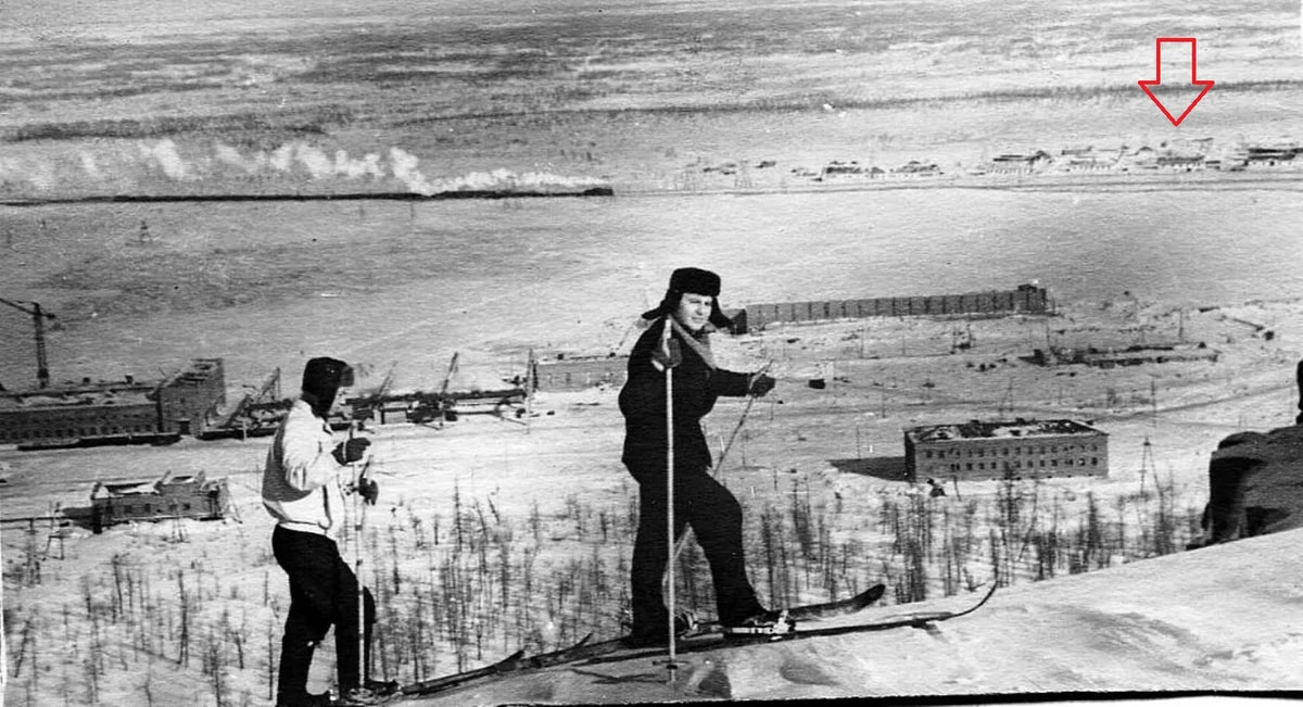 Из воспоминаний жительницы поселка Галины: "Поселок Железнодорожный помню, как 17 район. Вот так выглядел поселок, если смотреть от нашего барака. Жили в бараке № 29.
