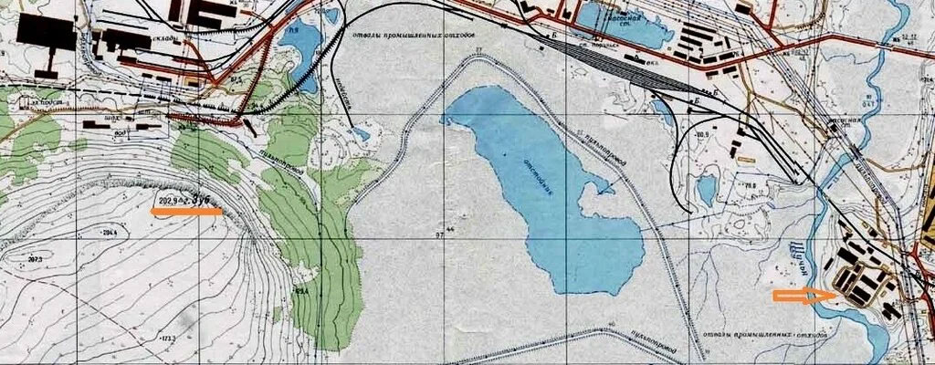 Фрагмент карты 1961 г. Мы видим, что территория посёлка занимает достаточно