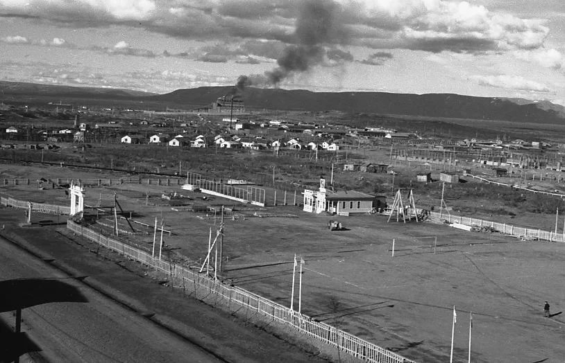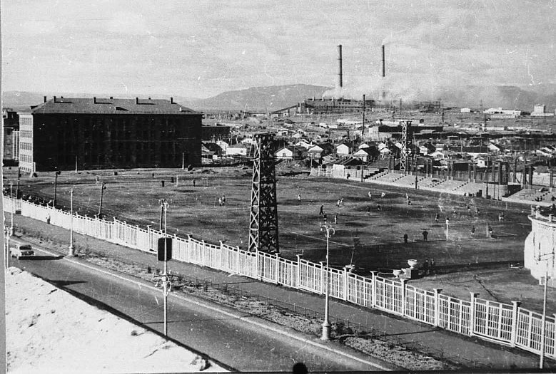 После ликвидации Норильлага в 1956 году, бараки бывшего ОЛП были перестроены под размещение вольнонаёмных работников комбината и получили название посёлок Металлургов. Посёлок на карте 1961 г. Желтым выделил ул. Октябрьская, зелёным - стадион "Труд".