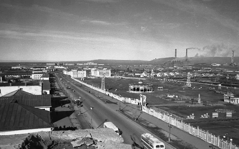 Общий вид второй половины 1940ых гг. Первая очередь ТЭЦ-1 ещё не закончена, нет