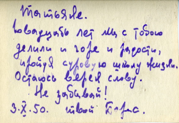 Оказалось, что Ю.М. Рязанов, будучи несовершеннолетним по сфабрикованному обвинению, был осужден на 15 лет исправительно-трудовых лагерей. В 1950–1952 гг. он находился в заключении в одном лагере с военврачом Б.А. Масловым. В 2010–2011 гг. по просьбе мемориала написал воспоминания о враче, которые назвал «Стальной доктор». Юрий Михайлович писал, что и в сталинском лагере военврач Маслов сохранял несгибаемый дух и верность врачебному долгу. Не могу не привести здесь выдержки из воспоминаний Ю.М. Рязанова о Борисе Алексеевиче, которые невозможно читать без боли в сердце: