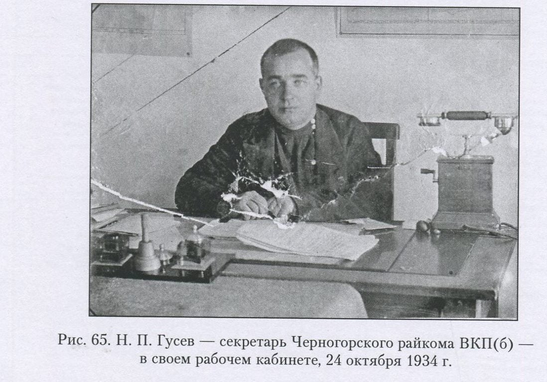 А вот жизнь Николая Петровича Гусева, первого секретаря черногорского районного, а затем городского комитета партии большевиков сложилась трагично. Уроженец Курской губернии, 1899 года рождения, прошел путь от помощника конторщика в магазине до члена бюро Хакасского обкома партии (это примерно середина карьерного роста члена коммунистической партии). За его плечами была служба добровольцем в Красной Армии, командные курсы РККА, роль курсанта 1 Объединенной военной школы им. ВЦИК в Москве. С ноября 1920 г. был кандидатом в члены Всесоюзной коммунистической партии большевиков, а с июня 1921 становится коммунистом. Была и учеба с 1925-1928 годы в Ленинградском коммунистическом университете им. Зиновьева, а затем работа по распределению в Прокопьевске по партийной и профсоюзной линям. В декабре 1932 года по поручению первого секретаря Западно-Сибирского крайкома ВКП (б) тов. Роберта Эйхе был направлен в поселок Черногорские копи руководить работой партии, ведь работа в угольном поселении была ему уже знакома. Он с этой задачей успешно справился и возглавлял партийные органы по октябрь 1936 года. Стоит лишь назвать некоторые цифры. Добыча угля с 261.000 тонн угля в 1932 году до почти 500 тыс. т. к концу 1936 г., динамика роста рабочих на угольном производстве с 1608 чел в 1931 г. до 3885 к 1937 году. Только в первую советскую пятилетку с 1929 по 1932 гг. население Черногорских копей выросло с 2107 до 15000 чел. Пришлось решать, прежде всего, производственные проблемы, затем жилищные, бытовые, социальные и прочие. Это было время внедрения стахановского метода, что требовало перестройки производственного процесса и воодушевления шахтеров на дополнительный труд, модернизации угледобычи, ее механизации. В Черногорске остро стоял вопрос с нехваткой энергоресурсов, имеющаяся ЦЭС не давала требуемого количества электроэнергии. Была острая нехватка жилья, проблема решалась строительством новых районов города: саманный городок, бутогерардовской колония (из бутового камня - плетняка), район современного треста с его одноэтажными бараками и двухэтажными домам – в них до сих пор, с начала 1930-х годов живут многие черногорцы.