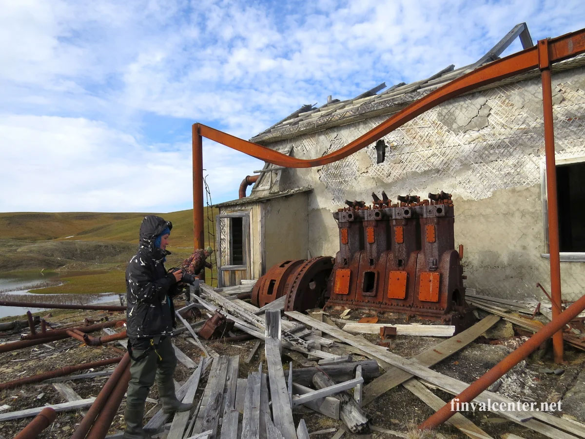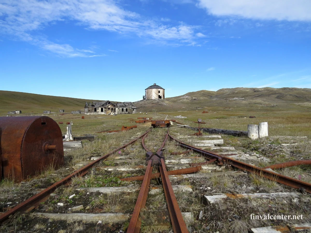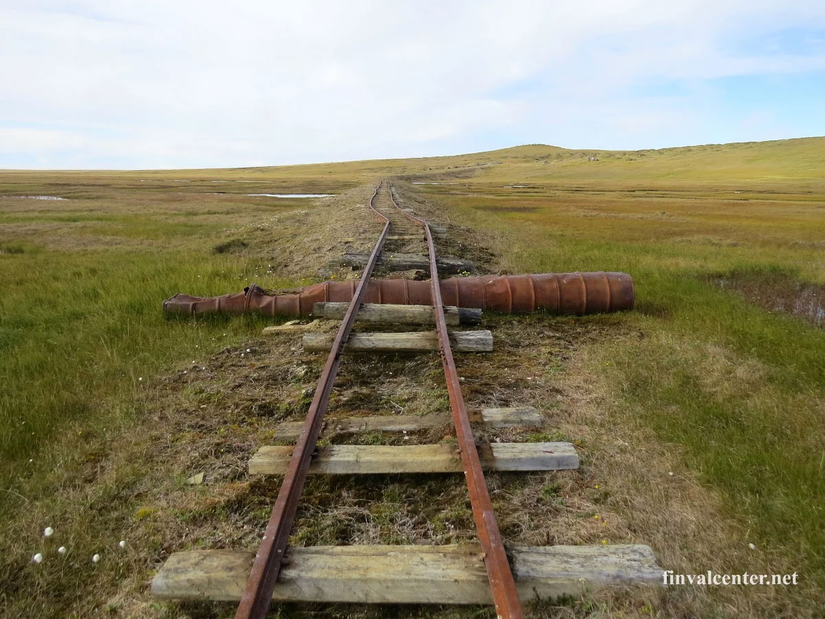 От баржи, служившей причалом в морском порту, до Солерудника по вечной мерзлоте была проложена узкоколейка по которой ходили мотовозы.