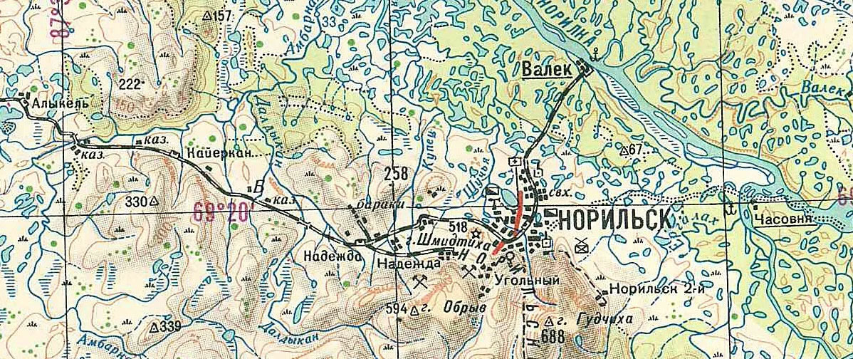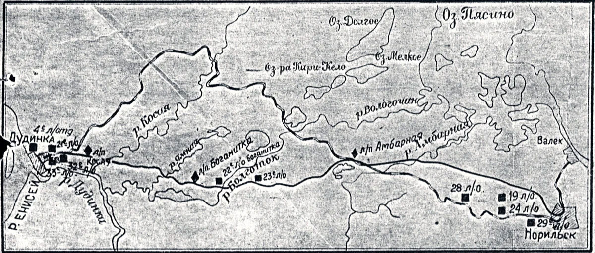 На этой схеме лаготделений Норильлага, Кайеркан, примерно, соответствует л/о
