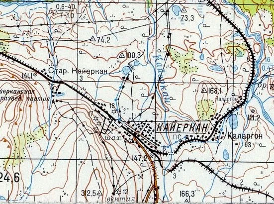 Вероятно, первая карта, на которой Кайеркан обозначен уже как рабочий