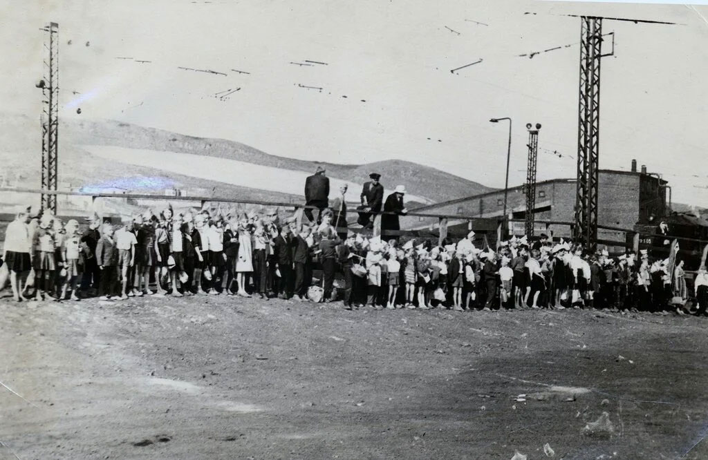 Пионеры на фоне углесортировки, 1950-60ые годы.