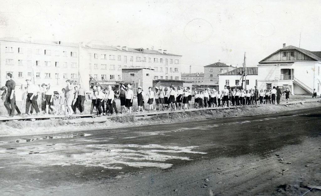 В июне 1956 года прибыл первый пароход с вольнонаемными рабочими, для которых срочно переделывались под жилье лагерные бараки. Балки и холодные постройки тоже переоборудовали под временные жилые помещения, “одноэтажные деревянные дома облегченного типа с пониженной степенью благоустройства”, как значилось в документах.
