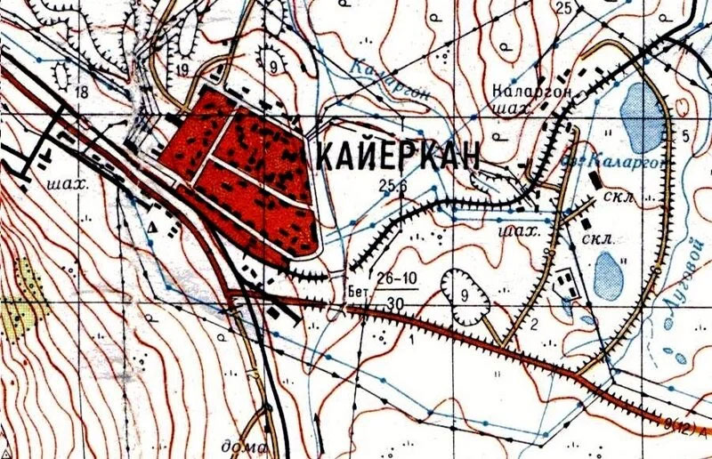 Кайеркан обозначен всего лишь как железнодорожная станция.